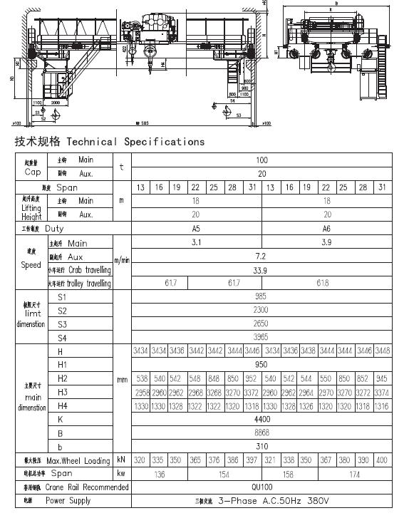 二、 產(chǎn)品簡圖及技術規(guī)格(QD100/20t)